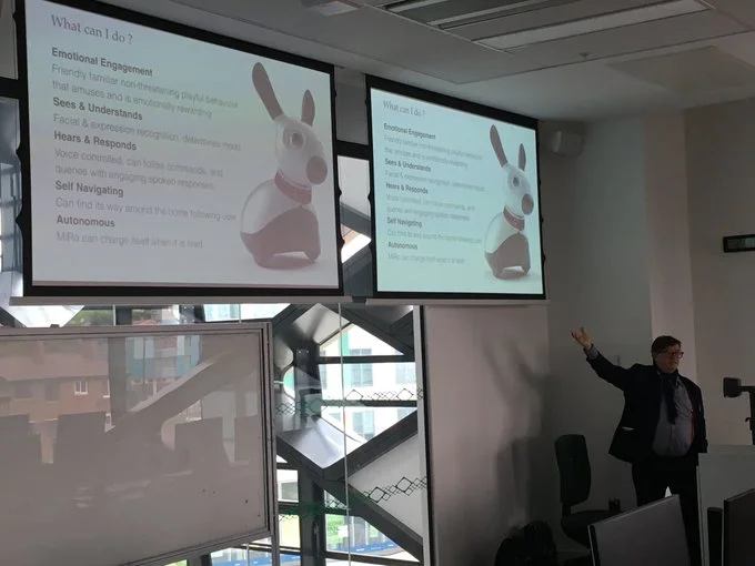 ‘Wonderful first day at the MiRo developer workshop! Excited to discuss collaborating with @scadhu (researcher of machines and love!) and meet Carl Clement (founder of @EmotionRobotics). Watch this space!’