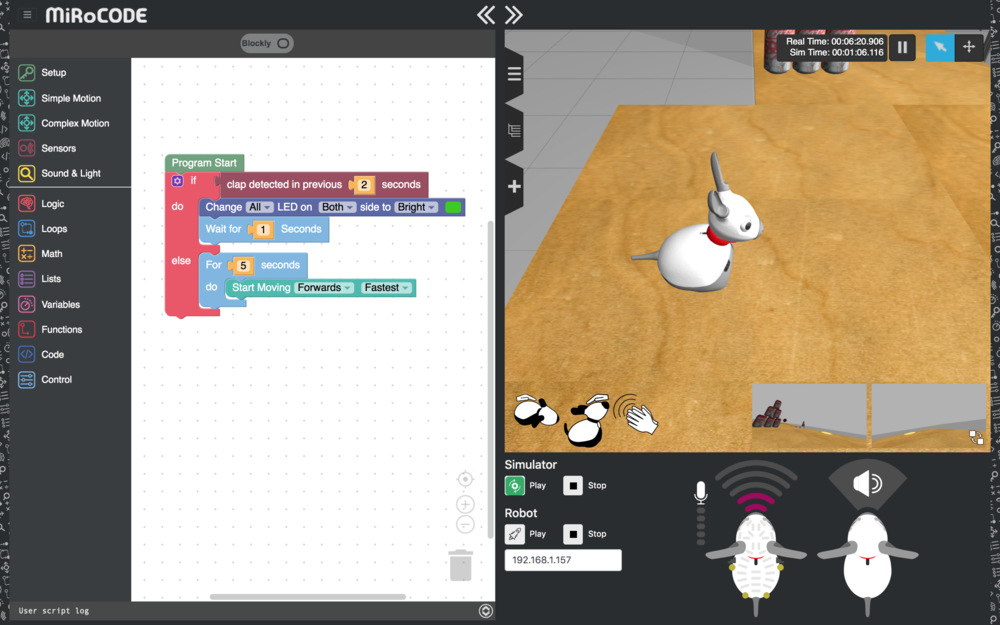 For anyone that has yet to familiarise themselves with MiRoCODE, the browser-based educational coding solution, we highly recommend downloading this version to learn how MiRo-E’ers all over the world are using MiRoCODE to teach coding to pupils of all age groups and abilities. Designed to make coding fun and engaging, MiRoCODE users can teach and learn coding, test their coding using the online simulator and then launch it on the MiRo-E robot.
