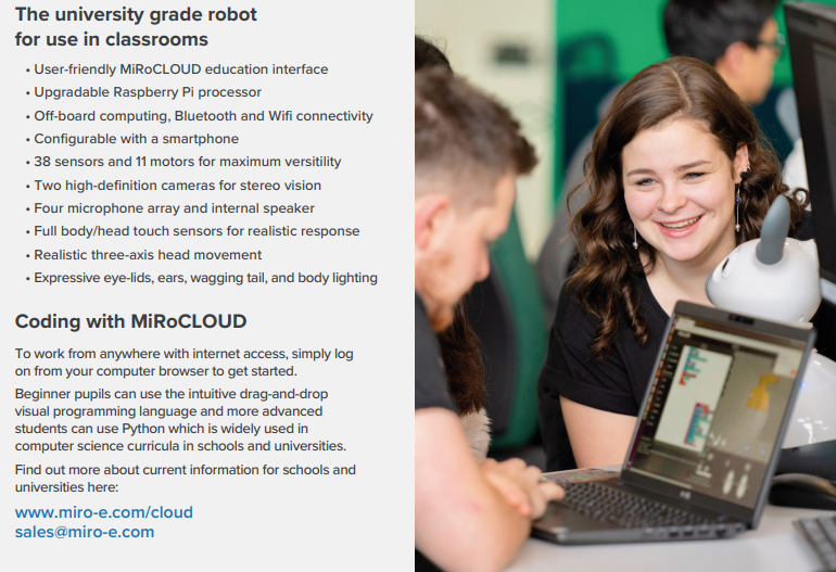 Enjoy a 10% discount on all orders during the CoViD hiatus. Simply use code: ‘StayhomewithMiRo’ at the checkout or email Sales@consequentialrobotics.com.